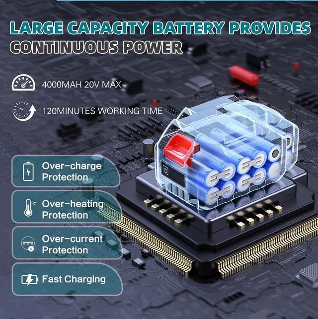 High-Capacity Lithium-ion battery, delivery longer runtime and extra torque