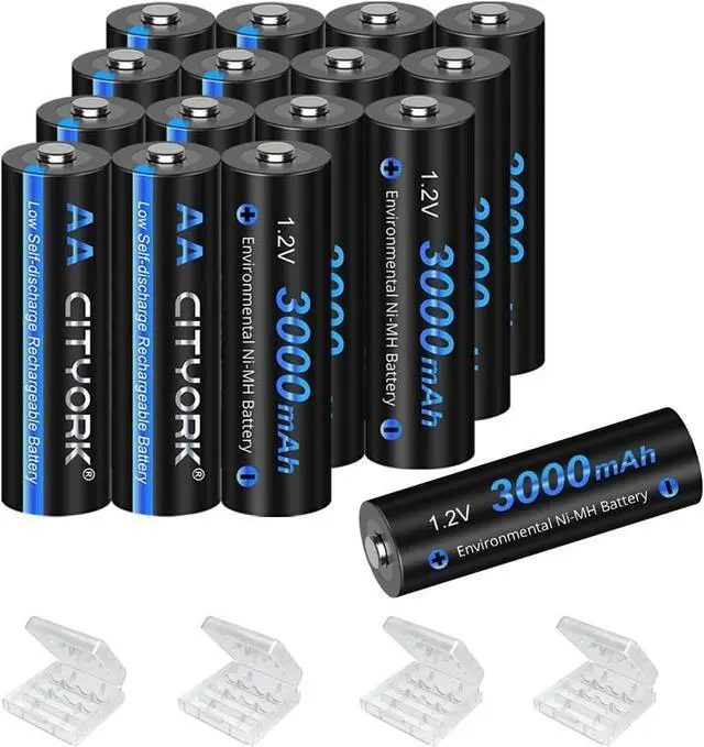 CITYORK 16 Pack 1.2V Ni-MH AA 3000mah Rechargeable Battery, NIMH Pre-Charged AA Rechargeable Battery 1.2V 3000mAh Long Lasting for Solar Lights, Remote Controller, Electric Toys