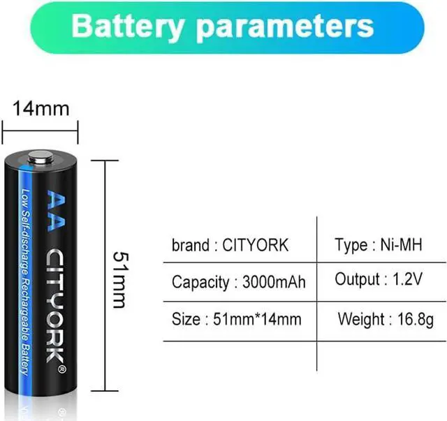 *Recharge Up To 1200 Times: Being one of the most cost-effective batteries, CITYORK AA batteries rechargeable cycle life can be up to 1200 times, money-saving and reduce waste effectively.
