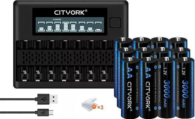 *NI-MH/NI-CD Battery Charger - The 8 slots 1.2V AA, AAA smart battery charger offers 8 different channels allowing you to charge any combination of AA/AAA NIMH/NiCd rechargeable cells without needing multiple chargers and eliminating your wait time. This package comes 12 AA rechargeable batteries with high capacities for longer run time.