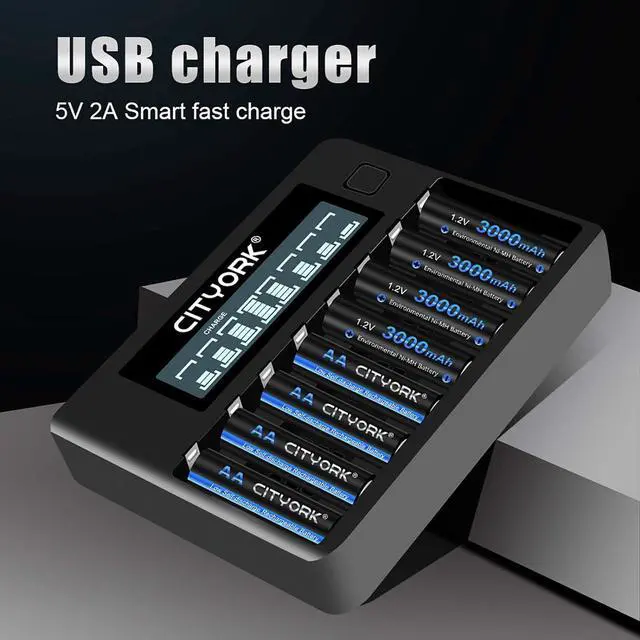 8 bay 1.2V AA AA battery charger with 12 pack AA 3000mah rechargeable battery