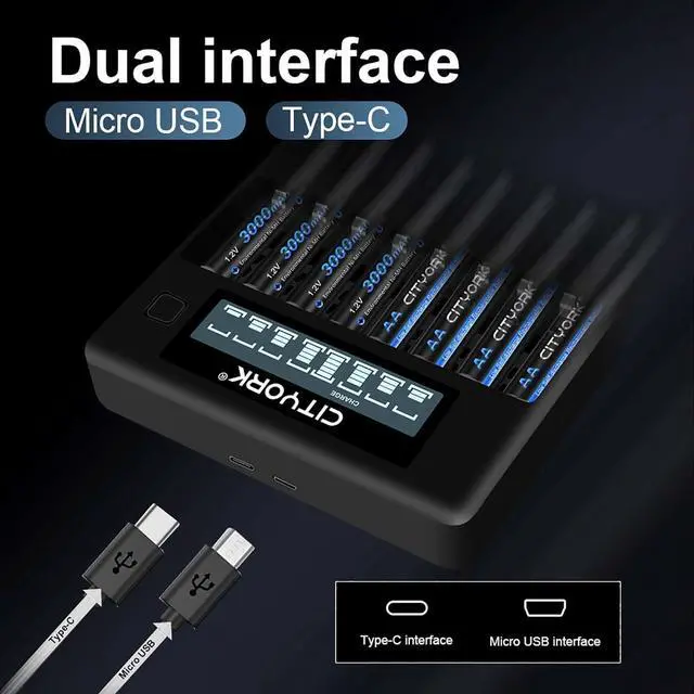 *Charger for TV remotes, gaming controllers, wireless mouse, wireless keyboards, kids toys, clocks, and many more. Easy to read battery status LCD screens - Smart LCD screen will indicate the whole charging process for the AA/AAA batteries; View each battery's charging or discharging status on the LCD lit screens. 8-Slot smart battery charger with LCD,easy to understand and easy to see, even when charging in the dark.
