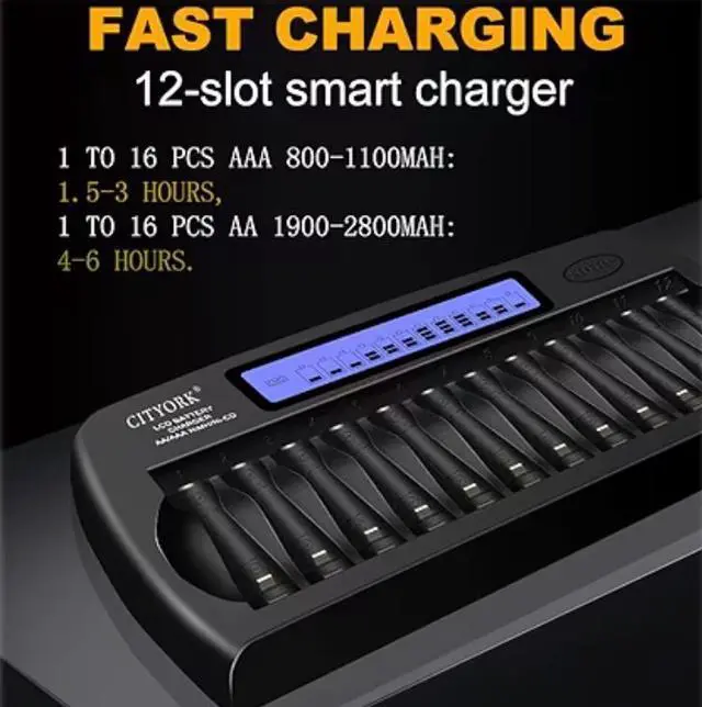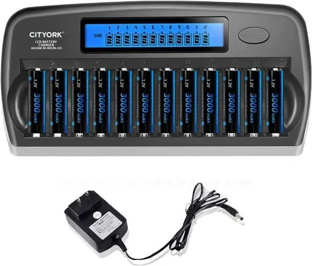 *NI-MH/NI-CD Battery Charger - The 12 slots 1.2V AA, AAA smart battery charger offers 12 different channels allowing you to charge any combination of AA/AAA NIMH/NiCd rechargeable cells without needing multiple chargers and eliminating your wait time. This package comes 12 AA rechargeable batteries with high capacities for longer run time.