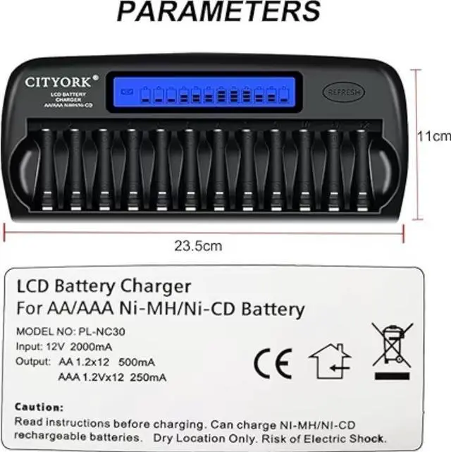 *Charger for TV remotes, gaming controllers, wireless mouse, wireless keyboards, kids toys, clocks, and many more. Easy to read battery status LCD screens - Smart LCD screen will indicate the whole charging process for the AA/AAA batteries; View each battery's charging or discharging status on the LCD lit screens. 12-Slot smart battery charger with LCD,easy to understand and easy to see, even when charging in the dark.