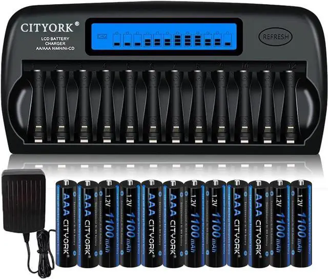 12 bay 1.2V AA AA battery charger with 12 pack AAA 1100mah rechargeable battery