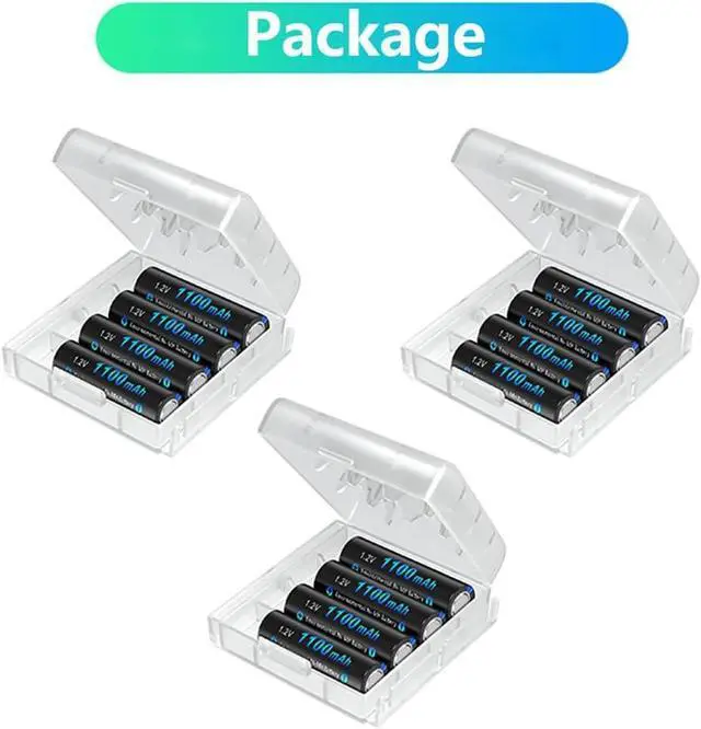 • Package Contents: 12 x 1100mAh AAA Ni-MH rechargeable batteries + Battery Case.