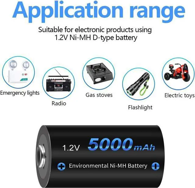 No memory effect: 4 Pack C cells 5000mah without memory effect in our rechargeable C battery, charge your batteries at any time. Even when they are close to or partially exhausted, you won't have to worry about long-term memory effects and you'll get the full capacity for each use.