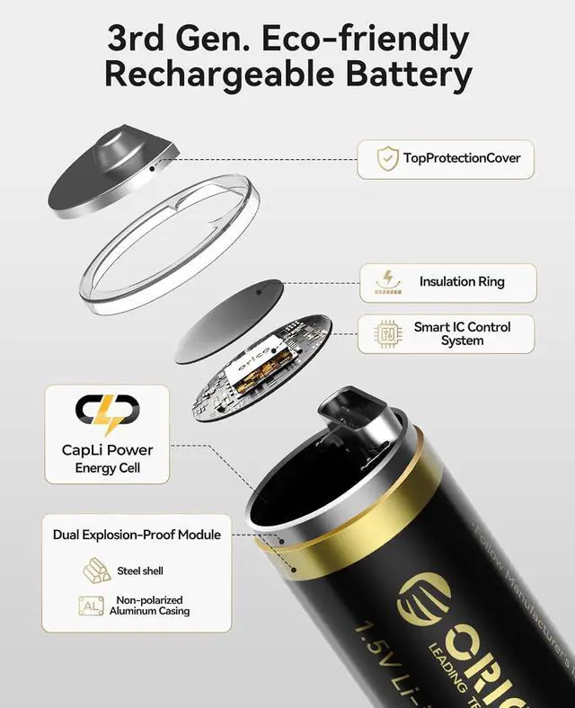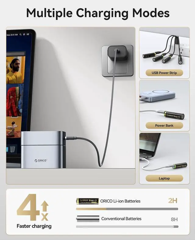 ORICO Ener-G Lithium-ion Battery Rechargeable AA Batteries with Tpye C Charging Cable 4-Pack Double ...