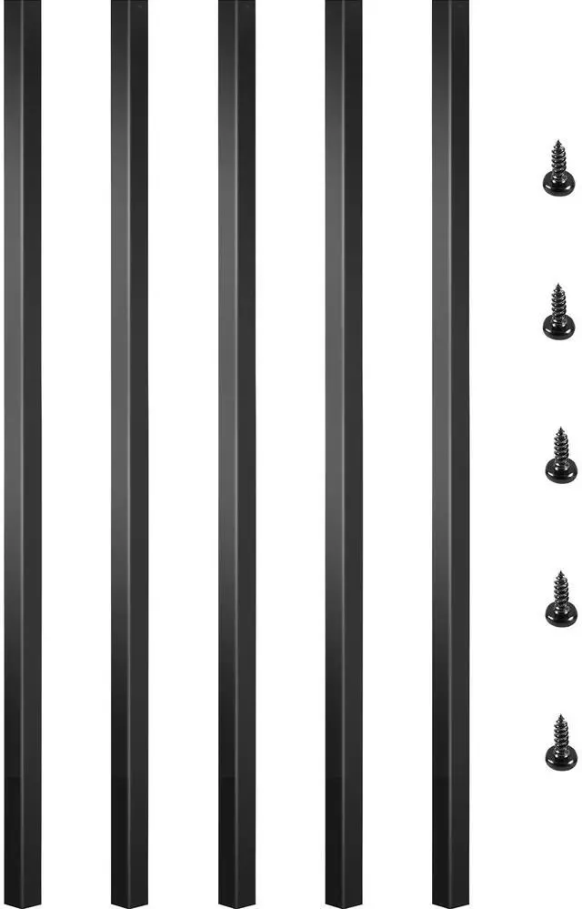 Material: Aluminum Alloy Product Size: 32" x 0.8" /81 x 2 cm Baluster Quantity: 101 Screws Quantity: 101 Color: Black