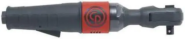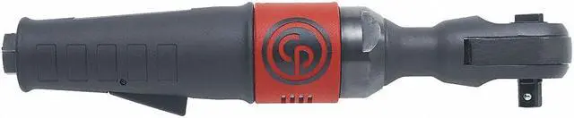 Ratchet, Air Powered, Air Consumption 4 cfm, Air Inlet 1/4 in NPT, Air Pressure 90 psi, Max. Air Pressure 90 psi, Min. Air Pressure 90 psi, Min. Hose Size 3/8 in, Exhaust Location Side, Drive Size 3/8 in Square, Retainer Type Ball Detent, Free Speed 225 RPM, Fastening Torque 70 ft-lb, Duty Rating Industrial Duty, Tool Brand Chicago Pneumatic, Overall Length 10 7/8 in, Side to Center 3/4 in, Tool Weight 2.7 lb. This item has been restricted from sale in the following state (s): []