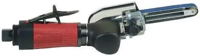 Air Belt Sander, Product Type Air-Powered Belt Sander, Belt Width 1/2 in, Belt Length 12 in, Arm Type Fixed, Arm Rotation Not Applicable, Speed Settings Variable, Belt Speed 2, 150 SFPM, Grip Type Offset, Horsepower 0.4 hp, Duty Medium, Air Consumption 22 cfm, Required Pressure 90 psi, Air Inlet Size 1/4 in, Air Inlet Type NPT, Minimum Hose Size 1/4 in, Throttle Type Non-Locking Lever, Vacuum Type Non-Vacuum, Tool Series CP5080, Sound Level 93 dBA, Vibration Level 2.5 vpm, Tool Length 11 1/4 in.
