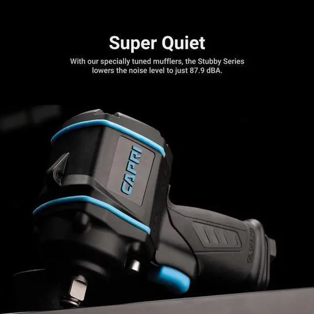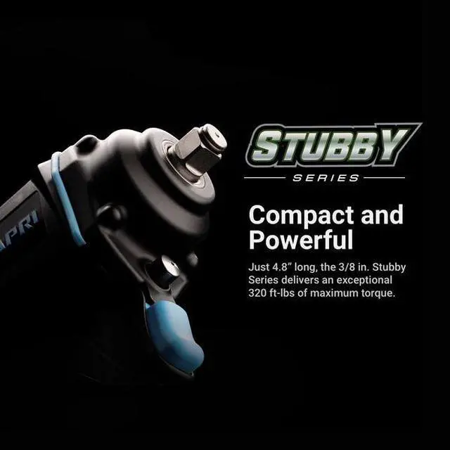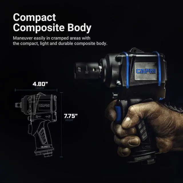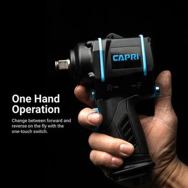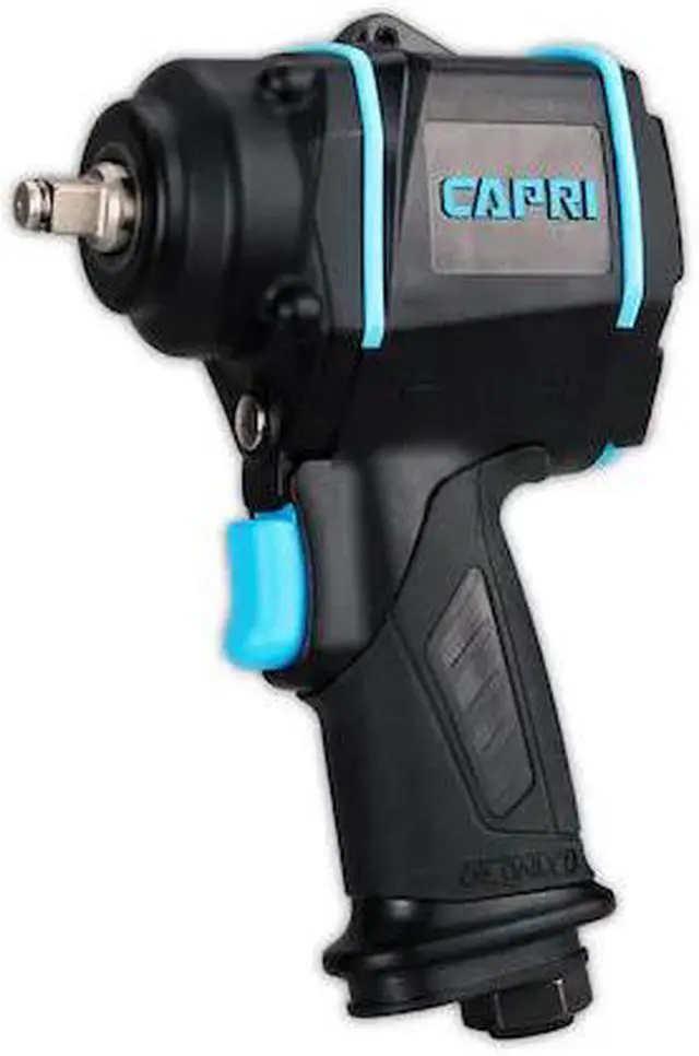 California Proposition 65: This product contains a chemical known to the State of California to cause birth defects or other reproductive harm. The Capri Tools Stubby Series Impact Wrench is the ultimate compact impact wrench; compact, quiet, low vibration, and powerful. It's 4.8 in. long compact body lets you maneuver easily in cramped areas. It is packed with a powerful 320 ft. lbs. of maximum reverse torque and 300 ft. lbs. of forward torque. The composite housing is light and durable. It operates with low vibration at only 4.8 m/s2 and helps reduce fatigue over long periods of use. One hand operation with forward/reverse toggle and power setting thumb dial. 6 settings total (3 forward and 3 reverse) gives you maximum control. It operates quietly at 87.9 dBA with low air consumption at only 4.2 CFM at 90 PSI. Weights only 2.86 lbs. Comes with 1/4 in. NPT air inlet.