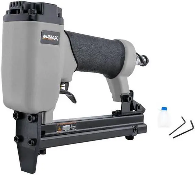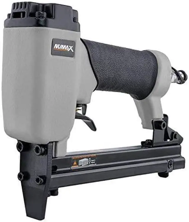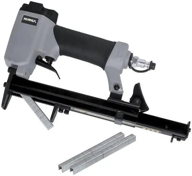 California Proposition 65: This product contains a chemical known to the State of California to cause birth defects or other reproductive harm. The NuMax SC22US Pneumatic 22-Gauge 5/8" Upholstery Stapler is specifically designed for upholstery projects, but is also an excellent tool for fabric applications, automobile interior work, as well as hobbies and crafts. This air powered staple gun is compatible with 22 gauge 3/8 crown staples from 1/4" to 5/8"S, and has a high capacity bottom loading magazine for increased efficiency. An ergonomically engineered die cast aluminum body results in a rugged and lightweight tool great for use over long shifts, and a comfort grip handle reduces fatigue while increasing control and accuracy of fastener placement. This durable stapler features an extended nose for hard to reach places, a trigger safety to avoid accidental firing, and a 360 degree adjustable exhaust to direct air away from your face and work surface. The Pneumatic 22-Gauge 5/8" Upholstery Stapler produces professional results and increases productivity