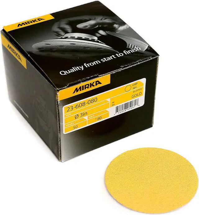 Bulldog Gold 3" Grip Disc 80 Grit - Gold features a semi-open coating and a special stearate designed to prevent clogging and pill forming which helps achieve an optimal sanding result.