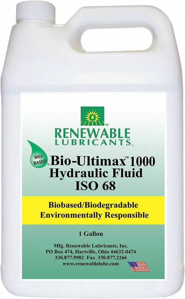 Formulated for most applications in industrial, marine, and mobile service where zinc-free fluids are desired. For high-pressure systems, systems with servo valves, NC control mechanisms, and all robotics.Mobile and industrial hydraulic fluids provide excellent oxidation and cold-temperature stability. Hydraulic Oil, Bio, Ultimax 1000, 1 Gal, 68