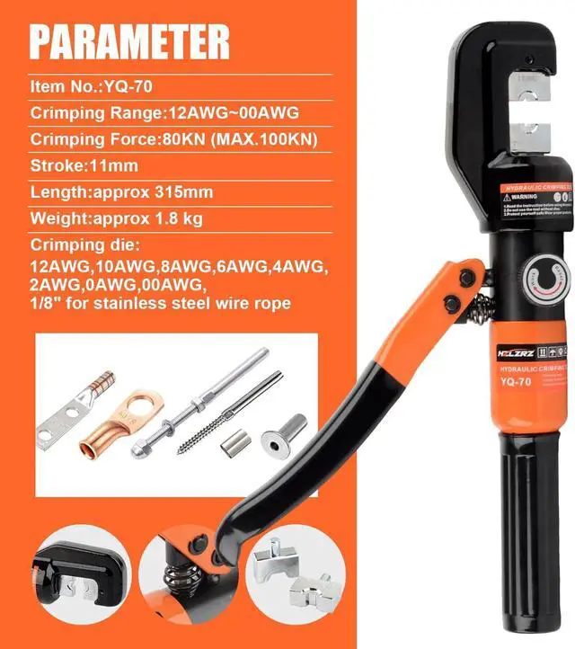 Versatile Application : Our Hydraulic Crimping Tool is perfect for attaching lugs to heavy-duty power cables and wires. It excels in crimping battery terminals, welding cables, power wires, electrical cables, and more.The 180° rotatable head facilitates working in narrow spaces