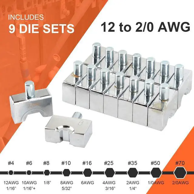 Hydraulic Crimping Tool and Wire Crimping Tool Kit, Range 12AWG-2/0AWG, 9 Pairs Of Dies For Cable Tool, Wire Rope Electrical Terminal and Battery Cable Crimper (YQ/70C)