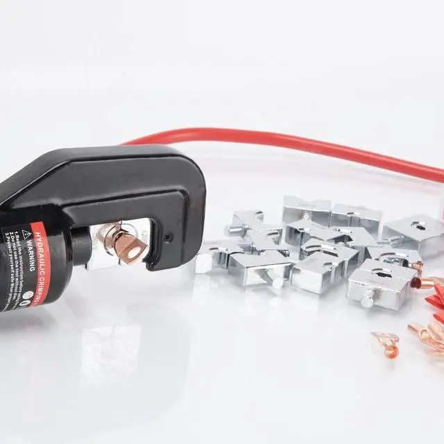 Heavy-Duty Hydraulic Crimping Tool: Designed for professional use, this 8-ton hydraulic hand crimper tool handles wires from 12 AWG to 2/0 AWG, making it ideal for battery cables, welding cables, and electrical installations.