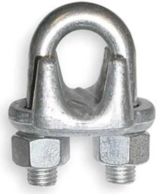 California Proposition 65: This product contains a chemical known to the State of California to cause birth defects or other reproductive harm. Wire Rope U-Bolt Clip, Compatible Rope Diameter - Minimum Not Applicable, Compatible Rope Diameter - Maximum 5/16 in, Rope Turnback Length 5 1/4 in, Material Malleable Iron, Minimum Installation Torque 12 ft-lb, Compatible Core Type Wire Strand Core, Clip Type U-Bolt Clip, Fabrication Cast, Compatible Rope Material Galvanized Steel, Compatible Strand Classification Not Applicable, Load Efficiency Rating Not Applicable, Color Silver, Lifting Capability For Lifting. This item has been restricted from sale in the following state (s): []