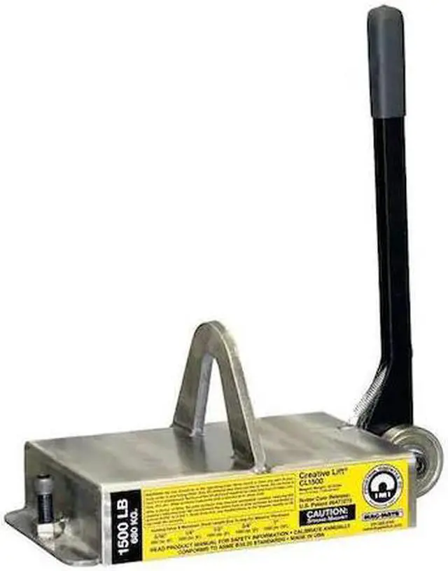 Lifting Magnet, Maximum Flat Load Capacity 1, 000 lb, Maximum Round Load Capacity Not Applicable, Minimum Thickness for Activation 3/16 in, Minimum Thickness for Maximum Load Capacity 3 in, Activation Mechanism Pry-Off Handle with Nonmarring Roller, Magnet Length 7 in, Magnet Width 6 1/2 in, Magnet Height 2 1/2 in, Overall Length 10 3/4 in, Overall Width 7 1/4 in, Overall Height 6 3/4 in, Bail Inside Width 3 in, Bail Inside Length 2 7/8 in, Handle Length 16 in. This item has been restricted from sale in the following state (s): []