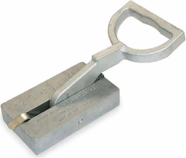 Manual Lifting Magnet, Product Type Manual Lifting Magnet, Maximum Load Capacity 50 lb, Release Mechanism Pull Lever, Magnet Length 6 1/8 in, Magnet Height 1 3/8 in, Magnet Width 3 5/8 in, Handle Type D-Handle, Loop Diameter Not Applicable, Handle Length - Maximum 7 3/4 in, Overall Length 11 1/2 in, Overall Width 3 5/8 in, Overall Height 4 in, Minimum Operating Temperature -148 Degrees F, Maximum Operating Temperature 300 Degrees F, Magnet Material Ceramic, Housing Material Cast Aluminum. This item has been restricted from sale in the following state (s): []