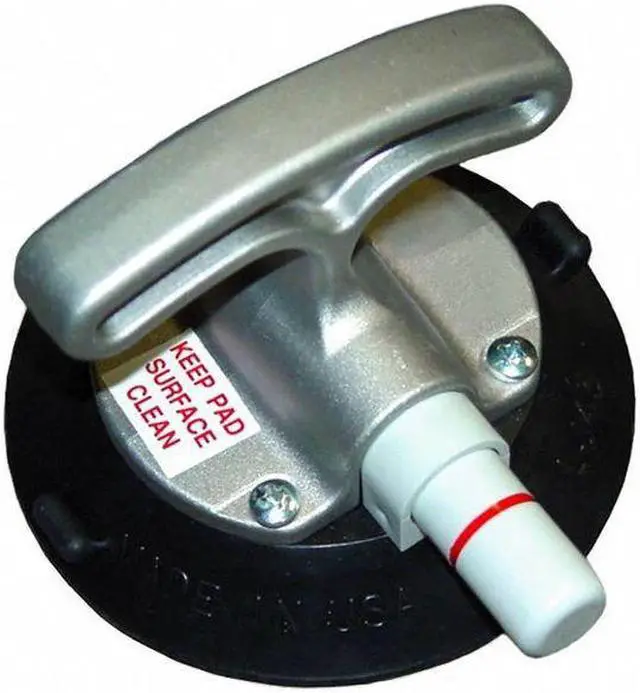 Suction Cup Lifter, Product Type Suction Cup Lifter, Cup Type Concave, Mount Type Not Applicable, Maximum Load Capacity 40 lb, Cup Diameter 4 1/2 in, Cup Material Rubber, Release Mechanism Pull Tab, Handle Type Horizontal Handle, Mounting Thread Size Not Applicable, Compatible Surface Type Curved Surfaces, Flat Surfaces, Minimum Operating Temperature 0 Degrees F, Maximum Operating Temperature 120 Degrees F, Includes Vacuum Pad Protector, Number of Cups 1, Handle Length 4 in. This item has been restricted from sale in the following state (s): []