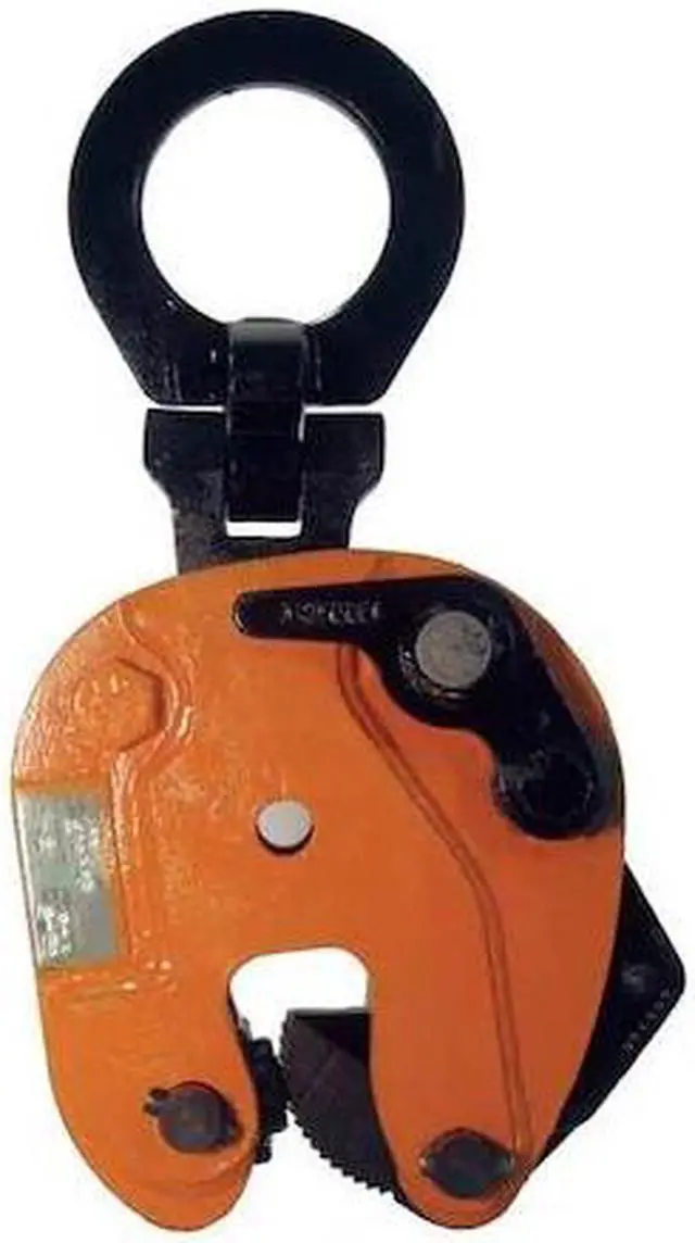 Plate Clamp, Working Load Limit 1, 000 lb, Attachment Type Pivoting Shackle, Open Type Manual, Close Type Manual with Lock, Minimum Material Thickness 0 in, Maximum Material Thickness 5/8 in, Minimum Jaw Opening 0 in, Maximum Jaw Opening 5/8 in, Material Steel, Clamp Type Plate Clamp, Operation Vertical Lift with 180 Degrees Flip, Attachment Diameter 2 3/8 in, Grip Type Teeth, Overall Height 12 in, Overall Width 3 1/4 in, Overall Depth 5 5/8 in, Standards ASME BTH-1. This item has been restricted from sale in the following state (s): []
