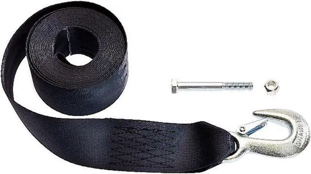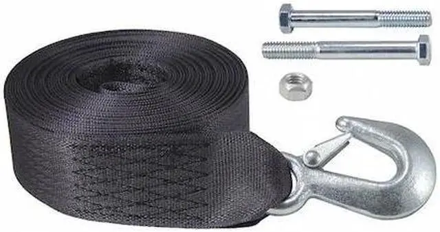 Strap, Product Type Strap, Material Steel, Overall Length 25 ft, Overall Width 2 in, Includes 3/8 in Locknut, 3/8 in X 3 1/4 in Bolt, 3/8 in X 3 in Bolt, Compatible Load Capacity 2, 600 lb, Compatible with Grainger Part Number 2Z602, 2Z603, Compatible with Manufacturer Part Number DL1800A, DL2500AB, Features 4000 lb Breaking Strength, For Use With Winches. This item has been restricted from sale in the following state (s): []