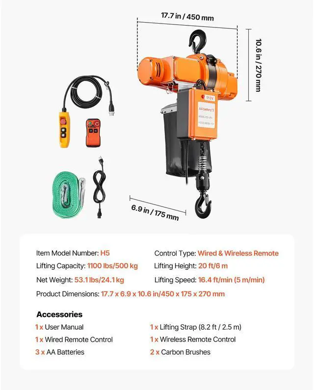 Lifting Height: 20 ft/6 m