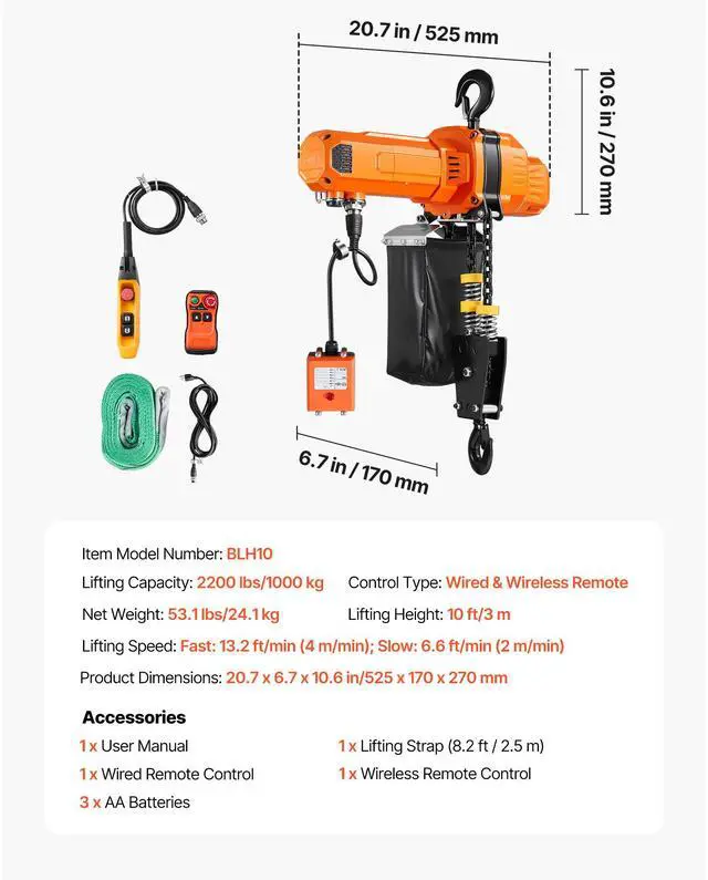 Lifting Height: 10 ft/3 m