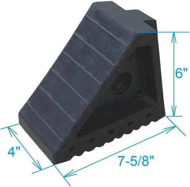 California Proposition 65: This product contains a chemical known to the State of California to cause birth defects or other reproductive harm. Primary Wheel Chock Application General Purpose, Width 4 in, Height 6 in, Depth 7 5/8 in, Rubber, Wheel Chock Surface Tread Grooved, Wheel Chock Style Single, Max. Vehicle Weight Not Rated, Wheel Chock, Black, Standards Not Applicable, Includes Carrying Handle, Wheel Chock Base Tread Grooved. This item has been restricted from sale in the following state (s): []