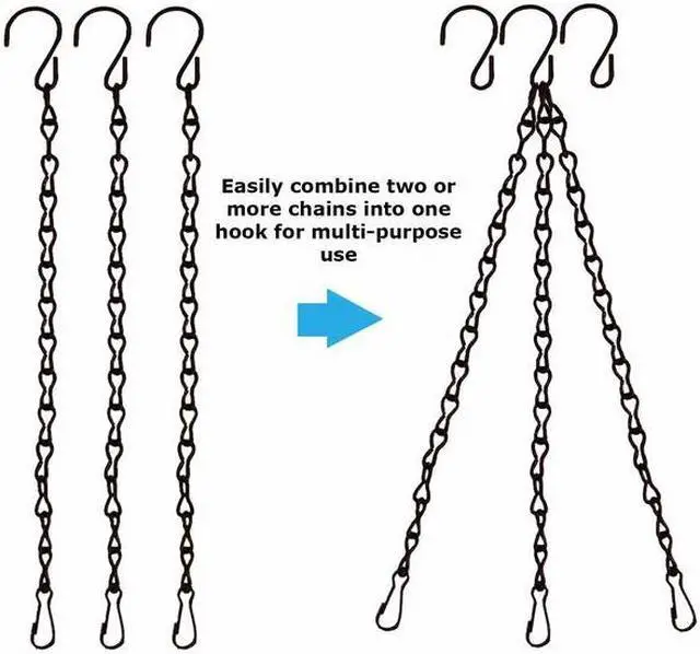 Variety of 12 Our custom hanging chain for bird feeder set comes with four 12 inch chains, four 24 inch chains and four 36 inch chains Total of 288 inches. Multipurpose Use Can be used as bird feeder chain, bird house chain, hanging planters chain, hanging lanterns chain, hanging ornaments chain, wind chime chain and many more options. Can Be Combined Easily combine 2 or more chains into one chain for multipurpose DIY projects. With the left-over S hooks for hanging use them to hang cups, kitchen utensils, closet clothing and much more.
