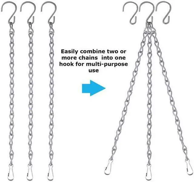 Variety of 12 Our custom hanging chain for bird feeder set comes with four 12 inch chains, four 24 inch chains and four 36 inch chains Total of 288 inches. Multipurpose Use Can be used as bird feeder chain, bird house chain, hanging planters chain, hanging lanterns chain, hanging ornaments chain, wind chime chain and many more options. Can Be Combined Easily combine 2 or more chains into one chain for multipurpose DYI projects. With the left-over S hooks for hanging use them to hang cups, kitchen utensils, closet clothing and much more.