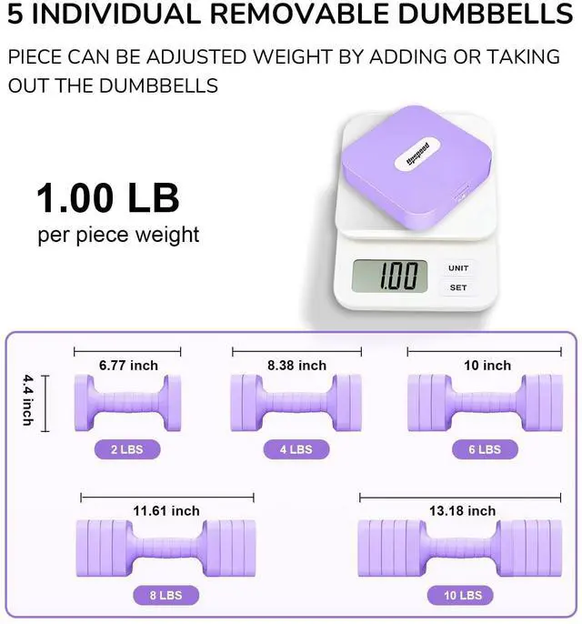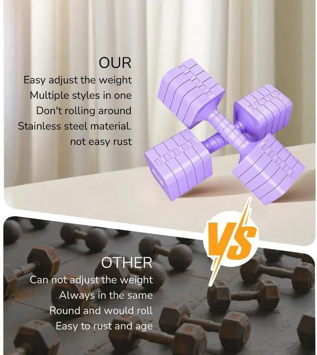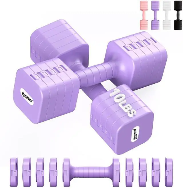 5 In 1 Adjustable hand weights dumbbells set for women men. Each dumbbells consists of 5 weight dumbbell plate, they come in 5 kinds of weight options, allowing personalized choices for users.