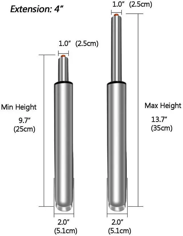 8 "stroke lift cylinder is 2-4 inches higher than the conventional. If you want a higher office chair gas lift cylinder,we highly recommend this size.