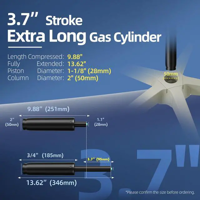 Yes, our cylinder measures 1-1/8” (28mm) at the top, where it fits into the chair seat, shaft diameter 2” (50mm) at the bottom, where it fits into the chair base, you can measure your original cylinder before ordering.