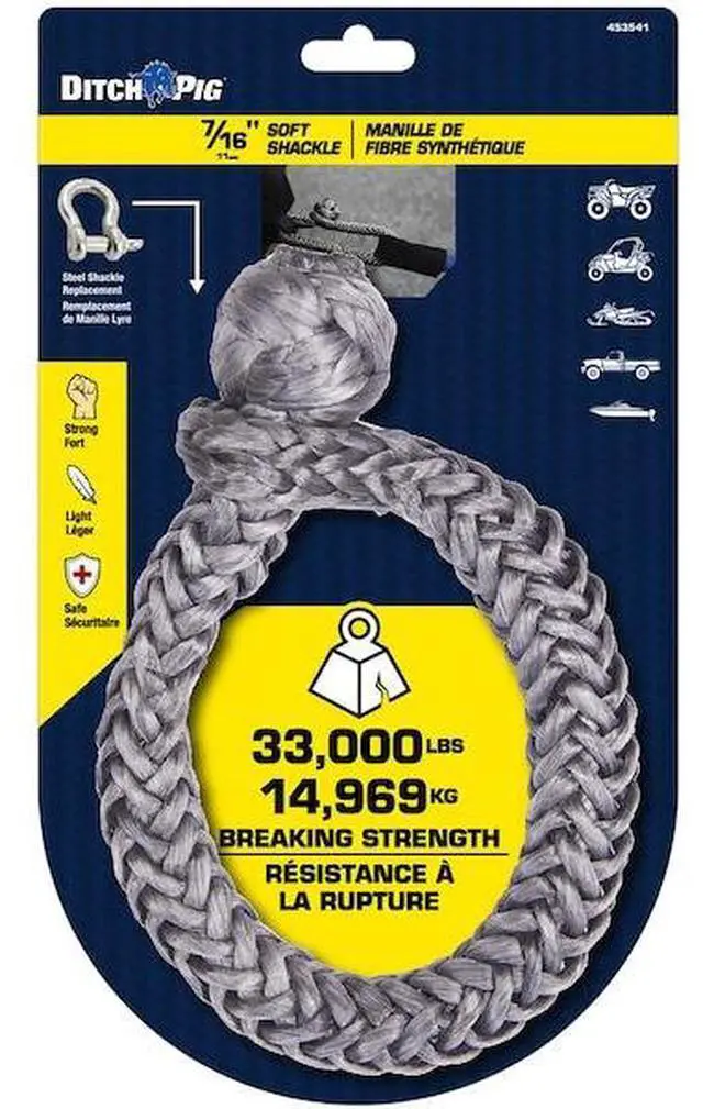 California Proposition 65: This product contains a chemical known to the State of California to cause birth defects or other reproductive harm. This soft shackle is made out of Ultra High Molecular Weight Polyethylene (UHMWP) rope. Extremely long chains of polyethylene molecules, when aligned in the same direction, are very efficient in carrying large loads. These tough, strong, and impact-resistant fibers are woven into a rope and made into a shackle that is very safe because it is exceptionally light, is very strong, has little stretch, is soft to the touch, and will dry quickly as the fibers do not absorb water.