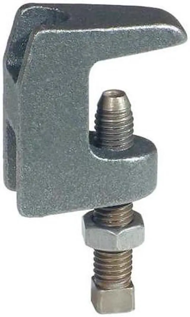 Wide Mouth Beam Clamp, C-Type, Rod Size 3/8 In., Max. Load (Lb. ) 500 at Top, 250 at Bottom, Material Malleable Iron, Length (In. ) 1-3/4, Metal Detectable Yes, For Use Under Roof Installations With Bar Joist Type Construction Or For Attachment To The Top Or Bottom Flange Of Structural Shapes Where The Vertical Hanger Rod Is Required To Be Offset From The Edge Of The Flange And Where The Thickness Of Joist Or Flange Does Not Exceed 1 1/4 In., Includes Set Screw And Locknut.