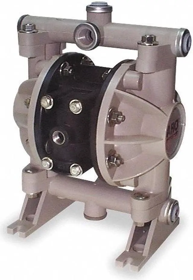 Double Diaphragm Pump, Pump Operation Type Air Operated, Max. Flow 13 gpm, Max. Temp - Pumps 150 Degrees F, Housing Material - Pumps Polypropylene, Inlet/Outlet Size 1/2 in, Connection Style NPT, Air Inlet Size 1/4 in FNPT, Diaphragm Material - Pumps Urethane, Agency Compliance CE, REACH, RoHS, Valve Type Ball, Max. Flow GPM 13 gpm, Max. Operating Pressure 100 psi, Ball Material Polyurethane, Check Seat Material Polypropylene, Max. Dia. Solids 3/32 in, Manifold Connection Multiport, Length 14 in
