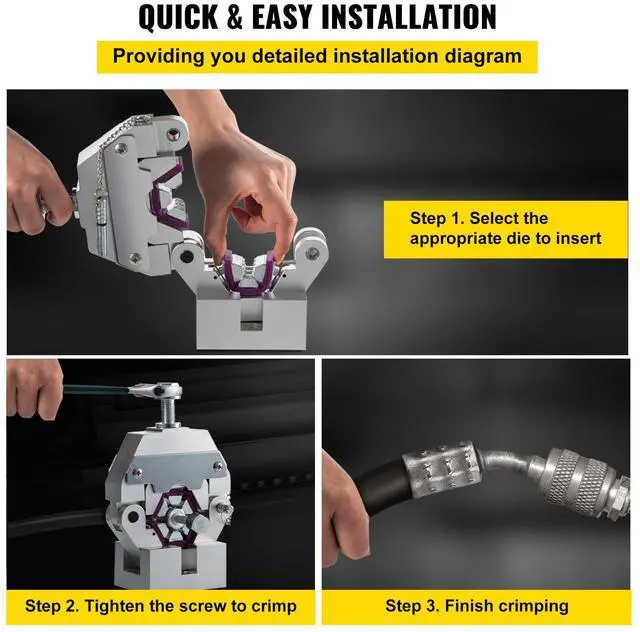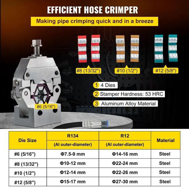Manually Operated AC Hose Crimper Hydra-Krimp 71550 Manual AC Hose Crimper Kit Air Conditioning Repair Handheld AC Hose Crimping Tool with 4 Dies