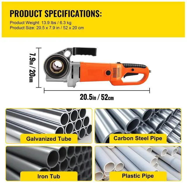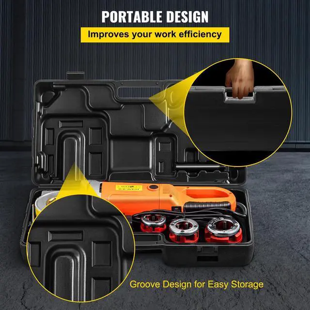 Electric Pipe Threader, 2300W Pipe Threading Machine with 4 Dies 1/2" - 1 1/4", 110V Hand-held Pipe Threader Machine with Copper Motor, Portable Electric Pipe Threading Kit with Carrying Case