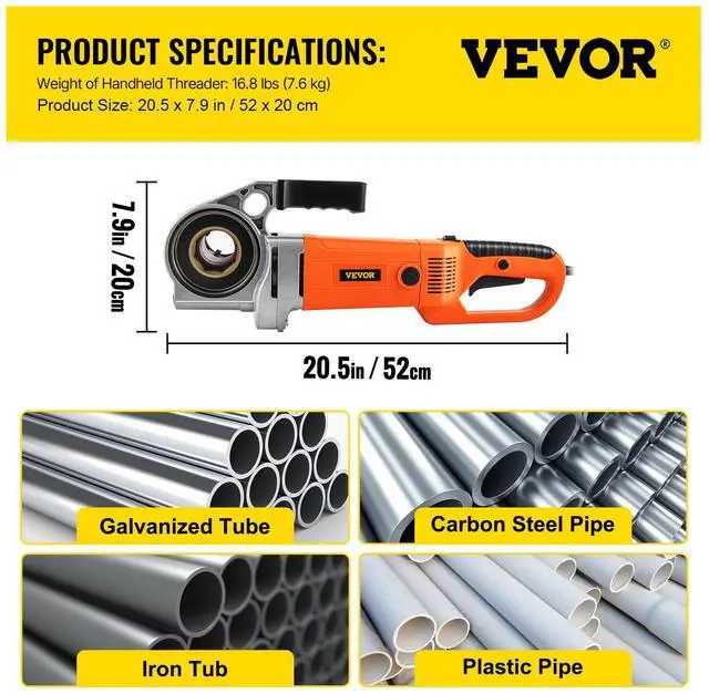 Threading Range: 1/2"-2"( 12.7 - 50.8 mm)