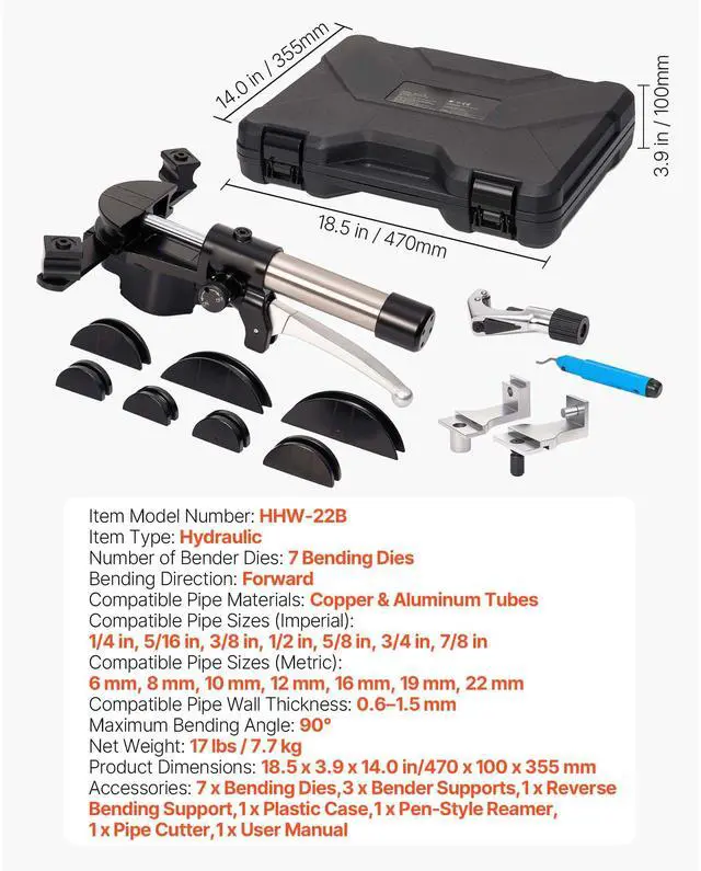Hydraulic Tubing Bender Kit, 1/4 to 7/8 Inch, Copper Tube Pipe Bender, Forward/Reverse HVAC Bending Tool Set, with 7 Aluminium Alloy Dies, for HVAC Air Conditioning Refrigeration Auto Repair