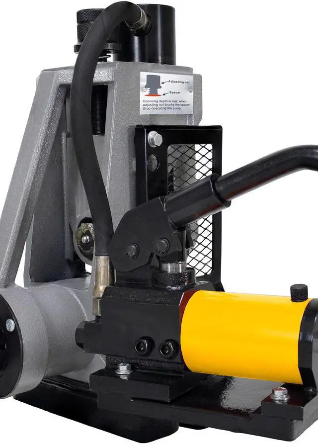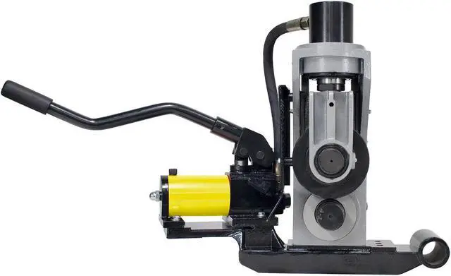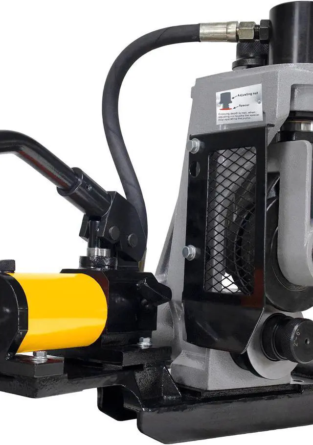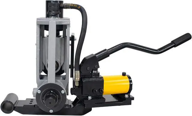 The Steel Dragon Tools® Model 918 Hydraulic Roll Groover 48297 features a powerful, ergonomic 15-ton hydraulic ram in a compact, easy to transport unit. The Steel Dragon Tools® 918 mounts quickly to a Steel Dragon Tools® Model 300 Power Drive, and a RIDGID® 300 Power Drive. This can also be adapted to a Steel Dragon Tools® 1224 pipe threading machine only with a Steel Dragon Tools® (SDT-918-MB) bracket. The Steel Dragon Tools® 918 Roll Groover works with RIDGID® 918 Roll Groover roll sets.