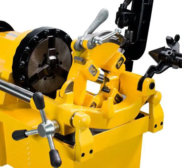 To ensure optimal performance and longevity of your pipe threading machine, we recommend greasing and/or lubricating your machine upon arrival and regularly greasing and/or lubricating all moving parts, especially the threading dies and carriage mechanisms. Proper greasing and/or lubrication minimizes wear, reduces friction, and enhances overall machine efficiency. Heavy use of your machine may require more frequent greasing and/or lubrication.