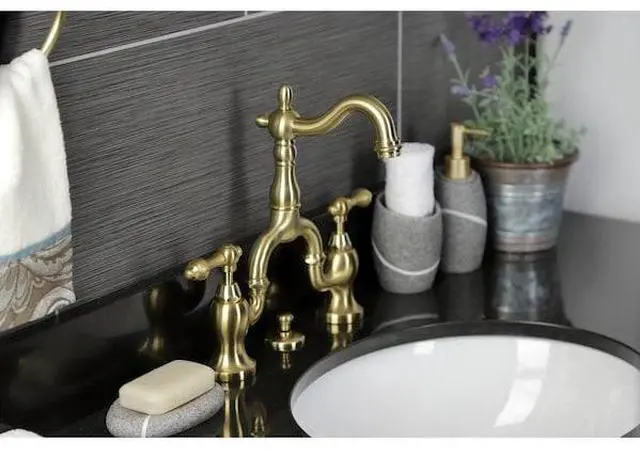 California Proposition 65: This product contains a chemical known to the State of California to cause birth defects or other reproductive harm. Embody the extravagance of 18th century Europe by adorning your house with the traditional elegance offered by this faucet Elegantly designed, the exquisite arch connecting the spout to the handles provides an added aesthetic appeal to make for more of a statement piece Additionally, the 818 inch of spout clearance make for a very easy hand washing experience with plenty of room for other tasks The English Country Bathroom Faucet with Brass PopUp and its featured sturdy brass construction and premium brushed brass finish will glamorize your home's traditional ensemble for years to come A matching finish drain is also included