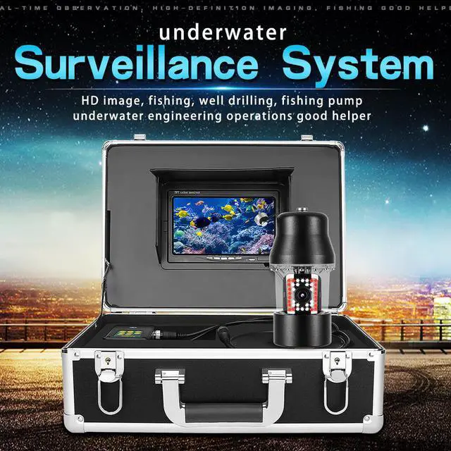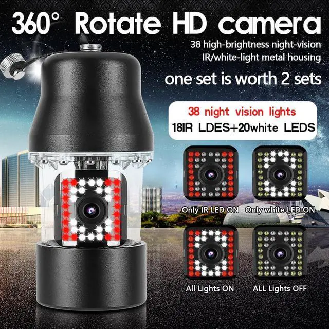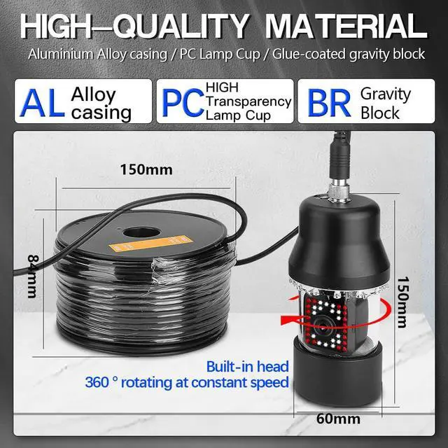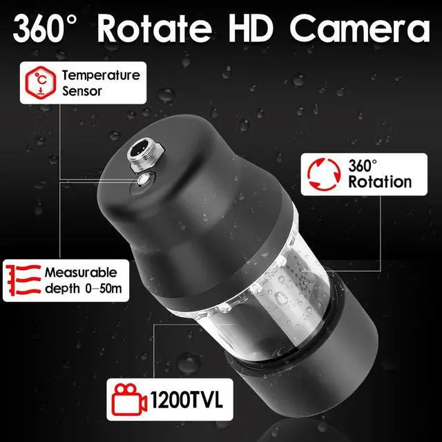 7 Inch 20m Underwater Fishing Camera Fish Finder with Depth Temperature 360 Degree Rotating Dome Rotating Panoramic viewing Camera