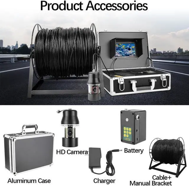 1 x Underwater Camera with Underwater Fishing Fish Finder Camera 7" Color Monitor camera ,fishing/Swimming/diving/snorkeling/Well/pipe inspection, Depth/Temperature display, HD Panoramic viewing 20m/65ft Camera can be rotated (HD CCD)