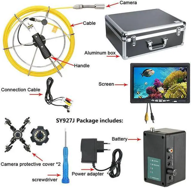 The pipe inspection camera combines a camera-tipped probe with 7" LCD monitor for viewing hard-to-reach inspection area. The deluxe leather sun visor provides clear viewing in outdoor inspection and extra protection for the monitor. It comes with a fully padded case which stores all kits for easy transport and use. It eliminates the needs of tearing drywall to locate leaks and helps to solve pipe problems. It is a must have for any homeowner, contractor and even professional plumbers!
