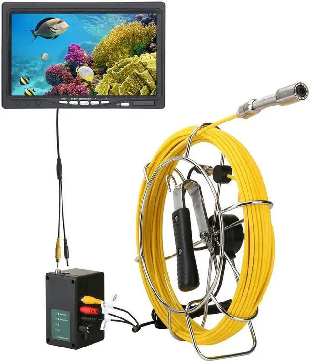 Professional Drain Pipe/Sewer Pipeline Inspection Camera is designed with a 7 inch color TFT LCD monitor with a sun-visor for outdoor inspections. The material of wire is fiberglass rod(diameter: 4.9MM ), anti-corrosion/cold/tensile.